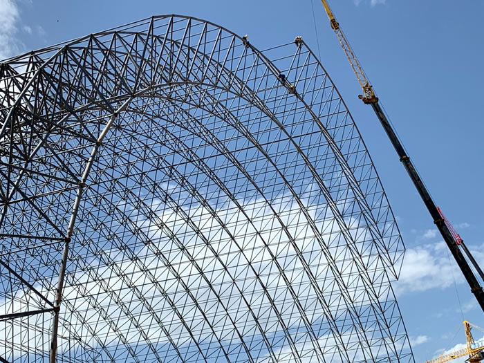 (2)网架加工前应对现场尺寸进行复测,确认无误后方可进行加工、安装;网架制作、运输、安装应遵守《空间网格结构技术规程》JGJ7-2010、《钢网架沈阳螺栓球节点》JG/T 10-2009、《钢网架沈阳螺栓球节点用高强度螺栓》 GB/T 16939-2016、《沈阳钢结构沈阳工程沈阳施工规范》 GB50755-2012、《沈阳钢结构沈阳工程施工质量验收标准》 GB50205-2020。